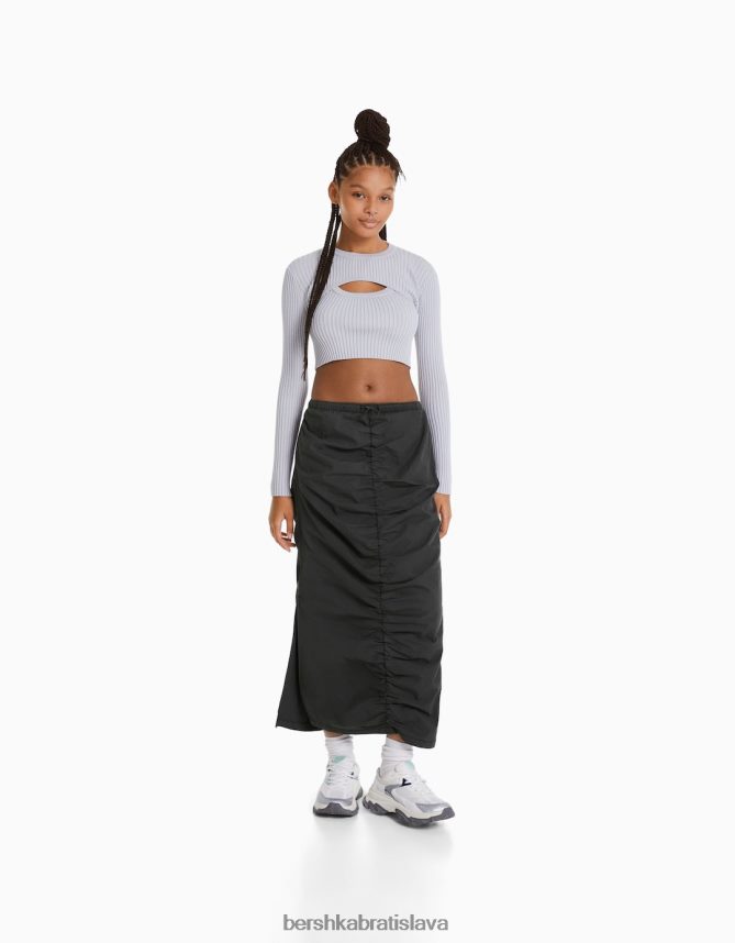 Bershka ženy dlhá džínsová sukňa s naberaným predným dielom tmavo šedá oblečenie B86RXX1377 Bershka Nohavice