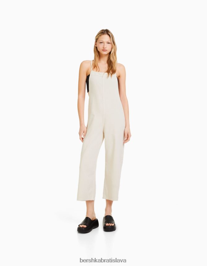 Bershka ženy džínsová kombinéza na pásiky krém oblečenie B86RXX85 Bershka Slovakia