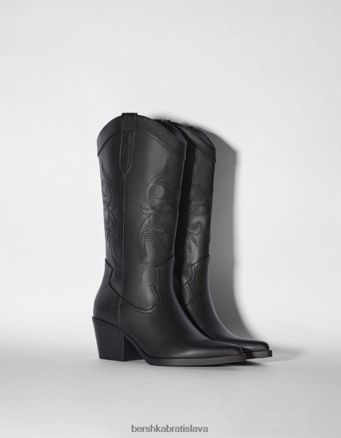Bershka ženy kovbojské čižmy na podpätku čierna obuv B86RXX2328 Bershka Nohavice