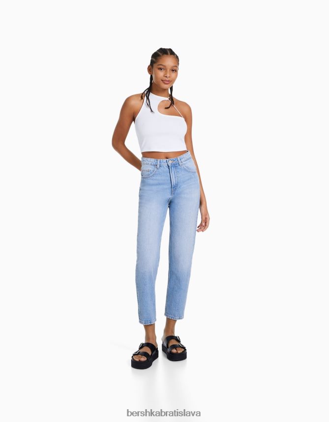 Bershka ženy mama džínsy svetlo modrá oblečenie B86RXX1529 Bershka Rifle