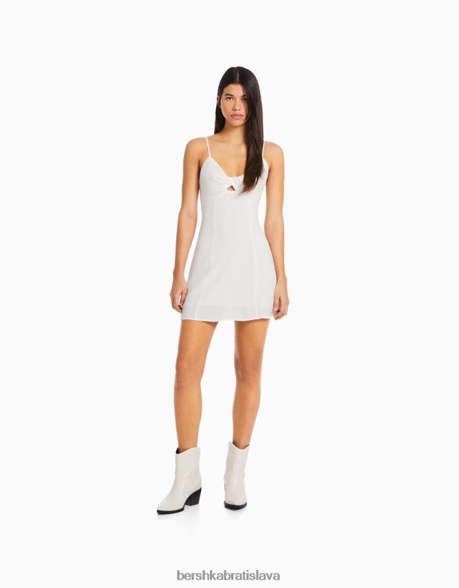 Bershka ženy páskové minišaty z ľanovej zmesi s uzlom biela oblečenie B86RXX71 Bershka Rifle