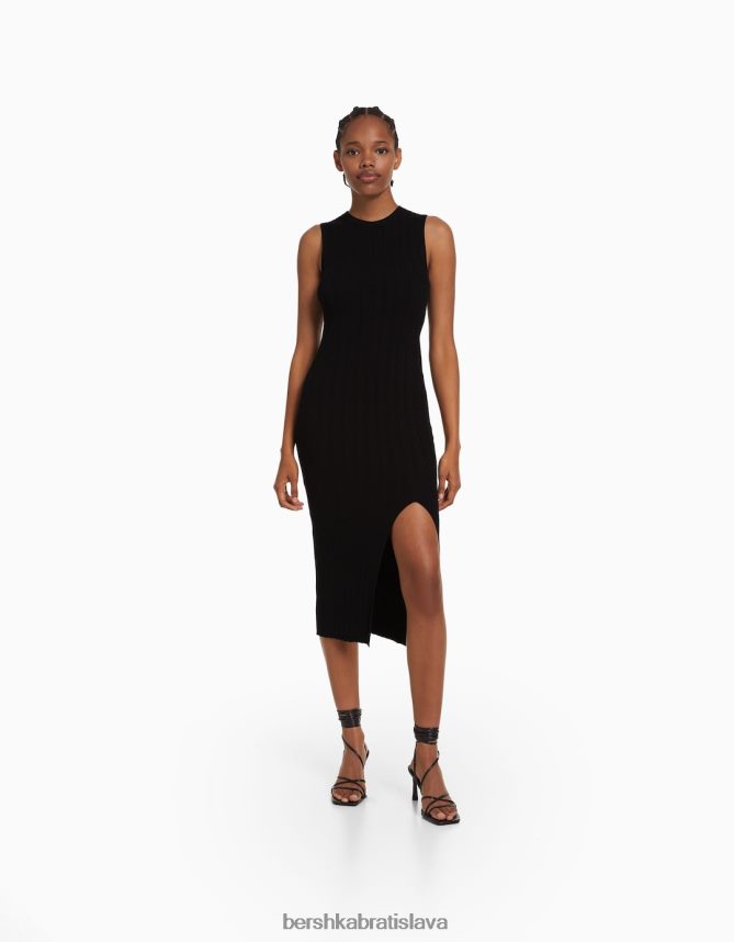 Bershka ženy pletené midi šaty bez rukávov čierna oblečenie B86RXX221 Bershka Rifle
