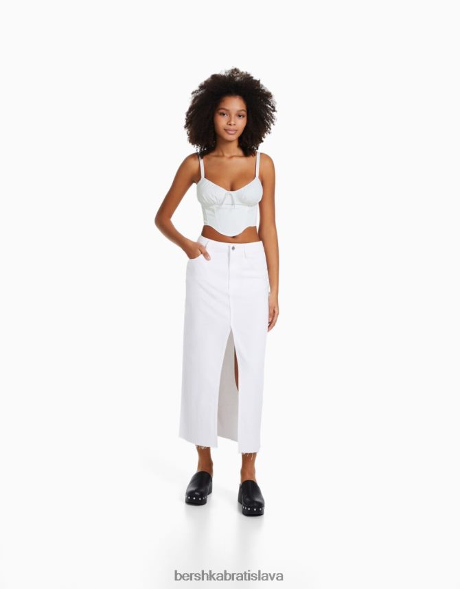 Bershka ženy popelínový skrátený korzetový top s ramienkami biela oblečenie B86RXX687 Bershka Nohavice