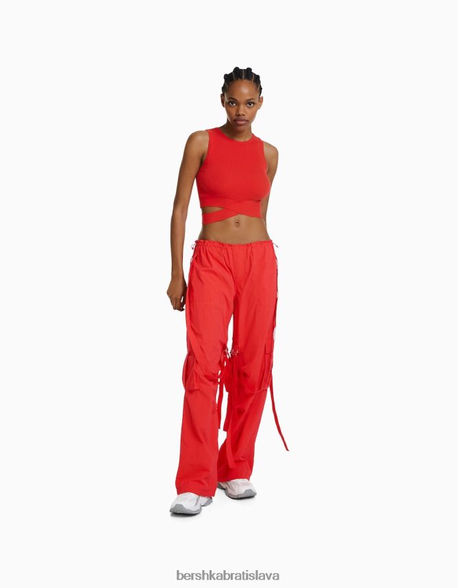 Bershka ženy popruhové nylonové cargo nohavice červená oblečenie B86RXX1311 Bershka Nohavice