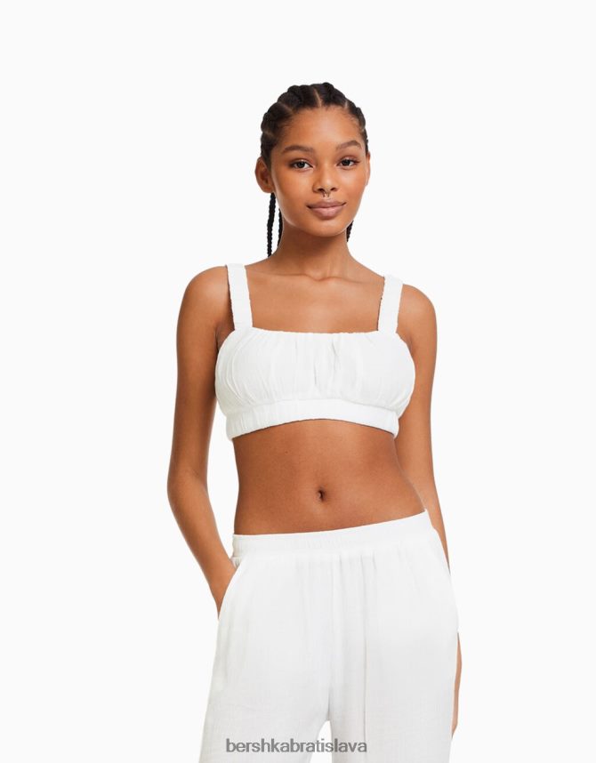 Bershka ženy popruhový krepový top bralette krém oblečenie B86RXX847 Bershka Slovakia