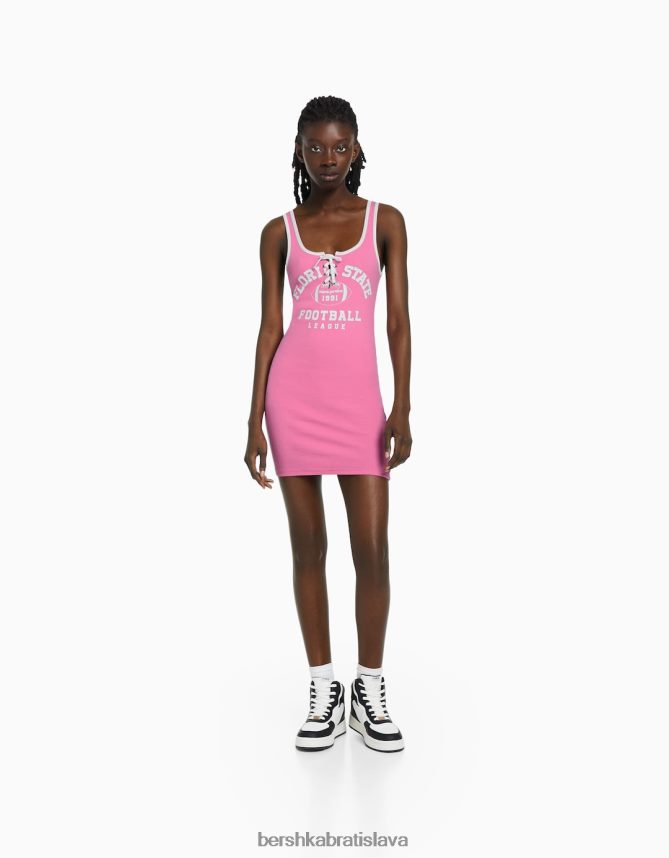 Bershka ženy rebrované minišaty na ramienka s potlačou ružová oblečenie B86RXX276 Bershka Nohavice