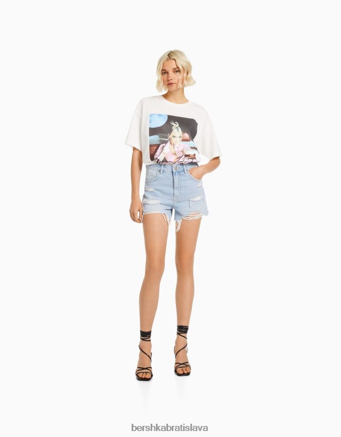 Bershka ženy roztrhané džínsové šortky s vreckami svetlo modrá oblečenie B86RXX1712 Bershka Rifle