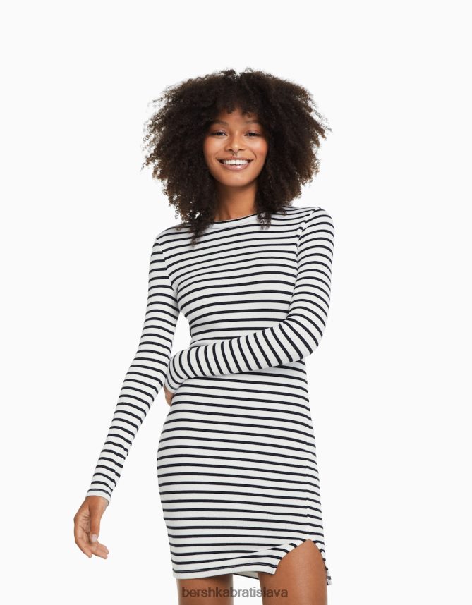 Bershka ženy vrúbkované rebrované minišaty s dlhým rukávom off white oblečenie B86RXX235 Bershka Slovakia
